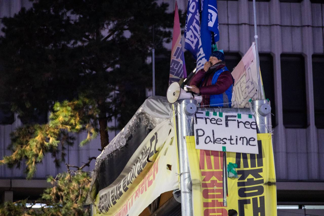 9ÀÏ Àú³á ¼¿ï ¸íµ¿ ¼¼Á¾È£ÅÚ ¾Õ Àεµ°¡ 300¿© ¸íÀÇ ½Ã¹ÎÀ¸·Î °¡µæ á´Ù. ¸ðÀÎ À̵éÀÇ ½Ã¼±ÀÌ ´ê´Â °÷, 10¹ÌÅÍ ³ôÀÌ µµ·Î ±¸Á¶¹° À§¿¡ »ç¶÷ÀÌ ¼ ÀÖ¾ú´Ù. Âù¹Ù¶÷ÀÌ ºÒ´ø Áö³ 2¿ù, ¼¼Á¾È£ÅÚ¿¡ ÇØ°íÀÚ 6¸íÀÇ º¹Á÷À» ¿ä±¸ÇÏ¸ç °í°ø¿¡ ¿Ã¶ó ±×°÷¿¡¼ ´Ù½Ã °Ü¿ïÀ» ¸ÂÀº °íÁø¼ö ¹ÎÁÖ³ëÃÑ ¼ºñ½º¿¬¸Í ¼¼Á¾È£ÅÚÁöºÎÀåÀ̾ú´Ù.